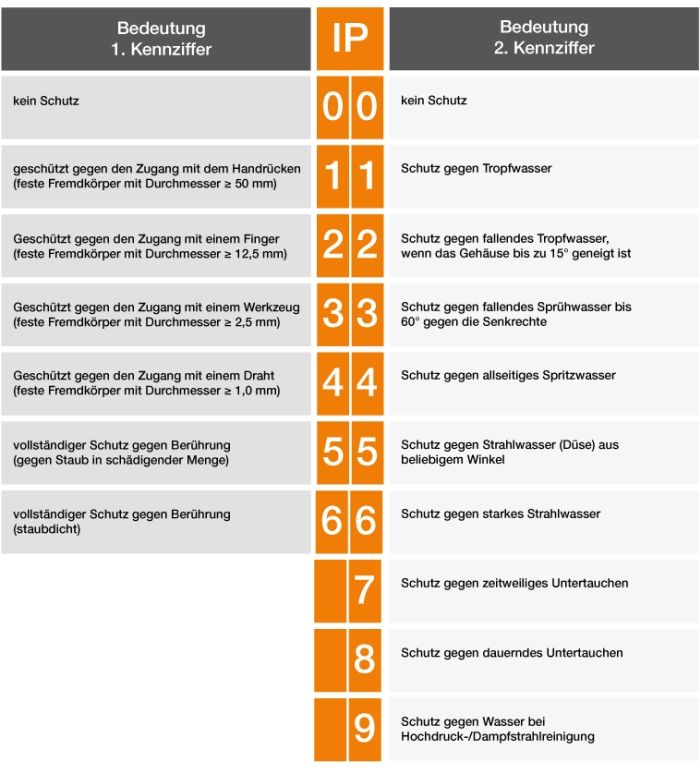 Like many electrical devices, drones must also be assigned to a protection class. The protection classes summarised in the IP standard EN 60529 describe the protection of devices against the ingress of foreign bodies and moisture . They are labelled using a simple key consisting of two letters "IP“ followed by two digits. The first digit indicates the degree of protection against dust, the second against water